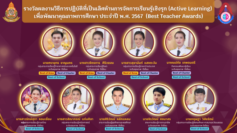 รางวัลผลงานวิธีการปฏิบัติที่เป็นเลิศด้านการจัดการเรียนรู้เชิงรุก (Active Learning) เพื่อพัฒนาคุณภาพการศึกษา ประจำปี พ.ศ. 2567 (Best Teacher Awards)