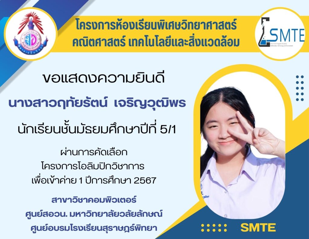 Previous เรื่อง ขอแสดงความยินดีกับ นายพีรพัฒน์ ปรีชานนท์ ม.4/1 ผ่านการคัดเลือกโครงการโอลิมปิกวิชาการเพื่อเข้าค่าย 1 ปีการศึกษา 2567 สาขาฟิสิกส์ Next เรื่อง รับสมัครครูอัตราจ้าง (Co-teacher) วิชาเอกภาษาอังกฤษ