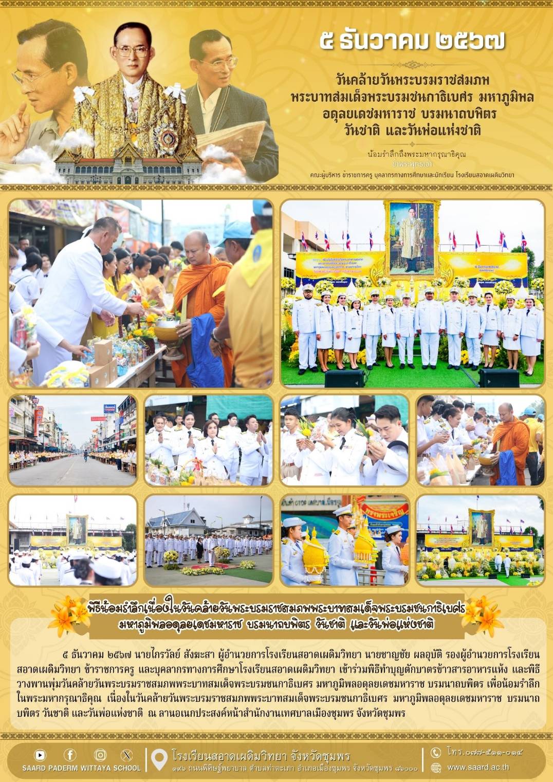 Previous เรื่อง วันคล้ายวันพระบรมราชสมภพ พระบาทสมเด็จพระบรมชนกาธิเบศร มหาภูมิพลอดุลยเดชมหาราช บรมนาถบพิตร วันชาติ และวันพ่อแห่งชาติ Next เรื่อง ภาพกิจกรรมพิธีน้อมรำลึกเนื่องในวันคล้ายวันพระบรมราชสมภพ พระบาทสมเด็จพระบรมชนกาธิเบศร มหาภูมิพลอดุลยเดชมหาราช บรมนาถบพิตร วันชาติ และวันพ่อแห่งชาติ 5 ธันวาคม 2567