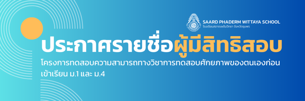 - ยื่นความจำนงในระหว่างวันที่ 16 ธันวาคม 2567 – 26 ธันวาคม 2567 ณ ห้องกลุ่มบริหารวิชาการ อาคาร 1 ชั้น 1 โรงเรียนสอาดเผดิมวิทยา จังหวัดชุมพร ค่าดำเนินการสอบคนละ 250 บาท
